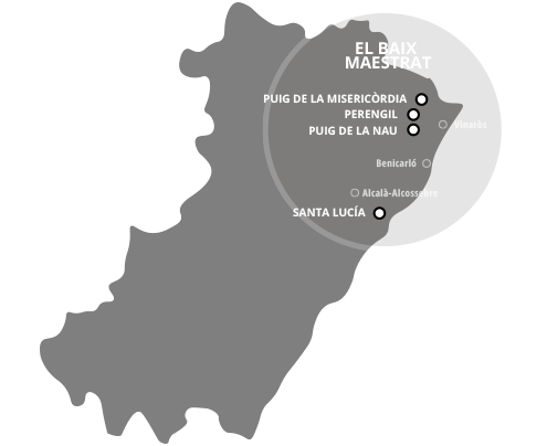 Three of these sites offer some parallels in terms of location, as they are located on three high hills of Vinaròs-Benicarló plains, being perfectly visible one from another. These are the Puig de la Nau, the Perengil de Vinaròs and the Puig de la Misericòrdia, three archaeological sites that present settlements from the Ancient Iron Age to the Iberian Period.