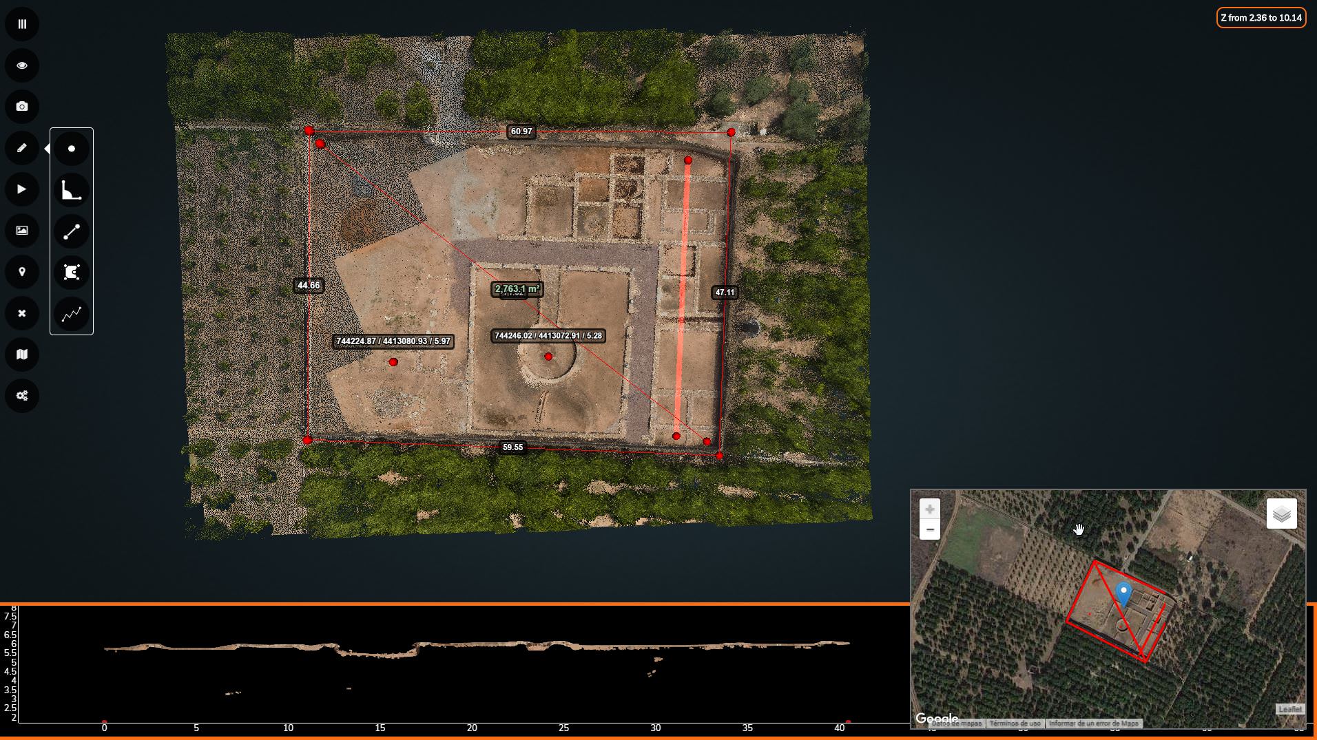 The excavations carried out have documented up to 35 different rooms covering a surface of almost 595 square metres