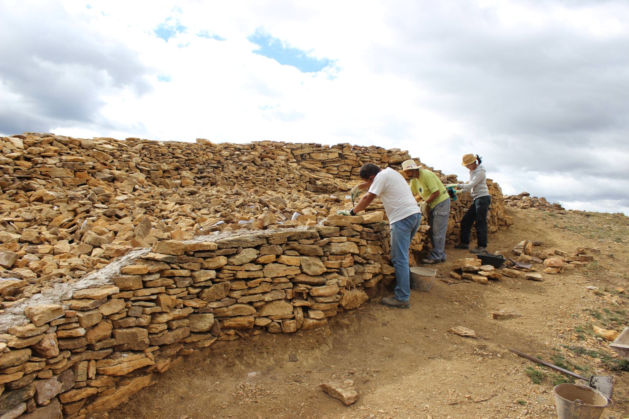 Los espectaculares resultados no se hicieron esperar y pudimos comprobar que la muralla oeste presenta una amplitud similar al lienzo este, de unos cinco metros de espesor. Así pues el yacimiento cuenta con un elaborado sistema defensivo compuesto de torre y dos imponentes murallas realizadas en piedra que debió servir no solo como defensa de sus ocupantes, sino también como referente visual en el paisaje y reflejo del prestigio de sus gentes.